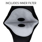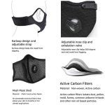 A unisex sports face mask with a PM 2.5 with activated carbon filter and breathing valves. Great for outdoor activities including running, walking, and cycling.